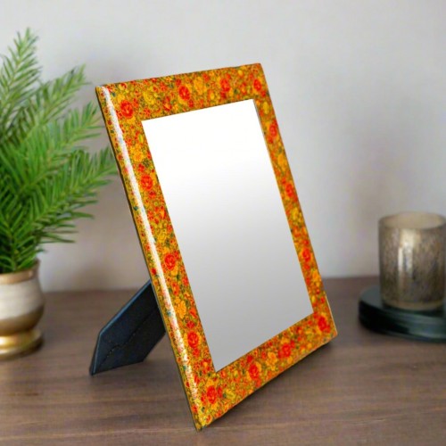 This Asian polychrome vintage painting is hand painted in muted reds and greens hues. This piece depicts a folk dance scene with a beautiful landscape in the background.