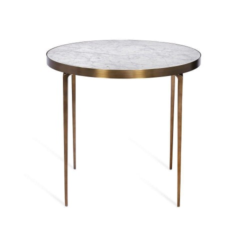 Pairing luxe Carrara white marble with edgy stainless steel in an antique bronze finish, the Violet Side Table showcases mixed materials at their best.
