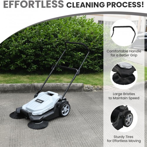 - HUMAN-POWERED PUSH SWEEPER: Perfect for a range of surfaces such as sidewalks, patios, garages, workshops, driveways, and more. This sweeper is specifically designed for efficient hard floor sweeping, offering reliable performance across various settings.
