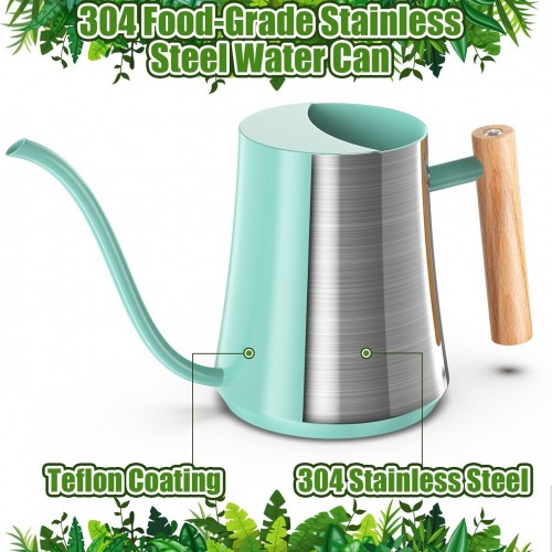 - 【COMFORTABLE WOODEN HANDLE】Our indoor watering can has a round comfortable wooden handle. It is easy to grasp and won’t hurt your hands. Also, our stainless steel watering can has a built-in open-top design, which is convenient for refilling water.an exquisite and light body design, our watering pot serves as a decoration.