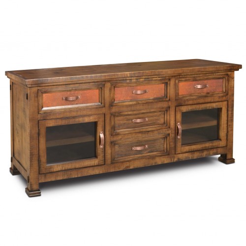 - Solid wood that is hand distressed and finished with a rustic rubbed stain