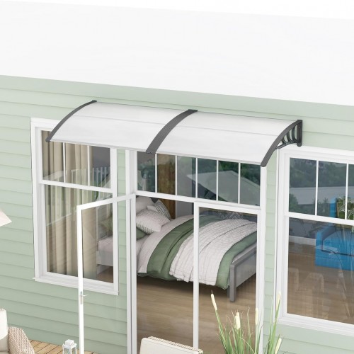 Window Awning Door Canopy, 48″ x 40″ Door Awnings Exterior with UPF50+ Sun Rain Snow Protection & Hallow Polycarbonate Sheet, Outdoor Front Door Entrance Canopy (Gray)