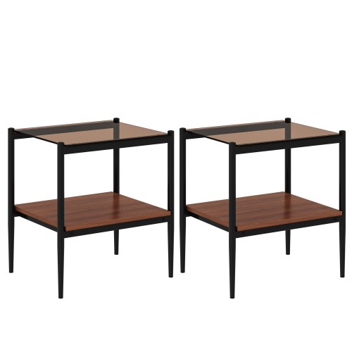 Wooden 2 Drawer Nightstand With Smokey And Asymmetrical Design – Walnut