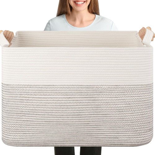 - Premium Cotton: The large storage basket is Crafted from 100% cotton rope, making it a soft, textured big basket that’ll look great in living room, bedroom, kids room, laundry room and nursery. The rope basket is safe to baby for no unpleasant chemical smells. No hard edges will keep your floors and walls free of scratches.It is more durable than plastic basket
