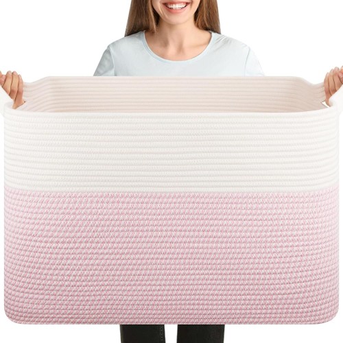 - Premium Cotton: The large storage basket is Crafted from 100% cotton rope, making it a soft, textured big basket that’ll look great in living room, bedroom, kids room, laundry room and nursery. The rope basket is safe to baby for no unpleasant chemical smells. No hard edges will keep your floors and walls free of scratches.It is more durable than plastic basket
