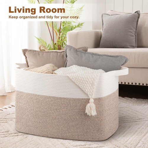 - Super Large Blanket Basket: The size of our extra large basket is 25″ x 16″ x 16″. This rectangular blanket basket is more stable and easier to restore its shape after you receive the package.Giant rectangular floor basket offer accessible blanket storage for living room and bedroom. This huge space-saving blanket holder has an 108 liters capacity and can hold tons of blankets and other bedding