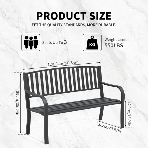 YLGJ&TIDY 50″ Outdoor Bench, Metal Garden Bench, Patio Park Bench with Backrest & Armrests, Rust-Resistant, Perfect for Gardens, Parks, Porch, Lawn and Yard (BENCH08)
