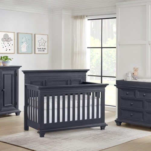 Oxford Baby Weston 4-in-1 Convertible Baby Crib, Midnight Slate, Green Guard Gold Certified